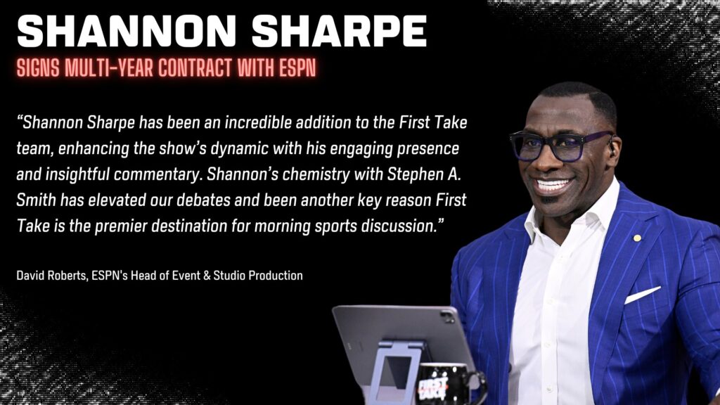 Sharpe, 57, initially joined “First Take” in the fall of 2023 after leaving FS1’s “Undisputed” with Skip Bayless earlier in the year. ESPN had signed a multi-year contract extension in 2024. The Pro Football Hall of Famer was going to see his role on First Take expand & extend to additional ESPN programming.