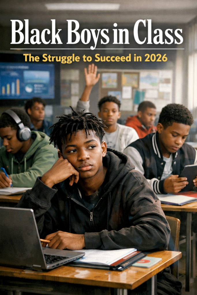 In 2026, the American classroom looks very different from the one many adults remember. Screens glow where notebooks used to sit. Artificial intelligence helps with homework. Phones buzz in pockets every few minutes. And in the middle of all of this change sits a group of students who have always carried the weight of the system on their backs: Black boys.