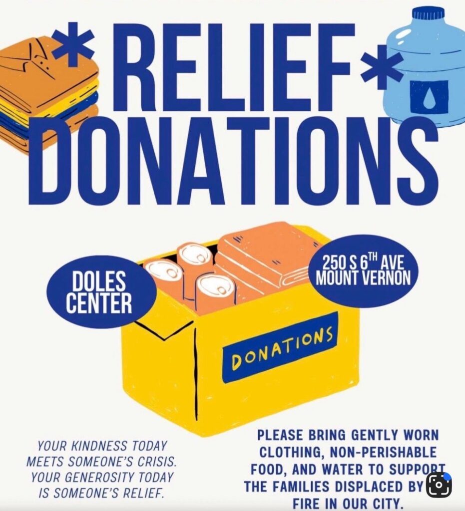 “Donations being accepted at the Doles Center here,” Mount Vernon Councilmember Cathlin Gleason said in a Facebook post. “Winter clothes, coats, toiletries, new undergarments. Please also think about our firefighters and police who have been out all night and our city administration. Red Cross and Office of Emergency Management coordinating efforts. Pray for all the families displaced.”