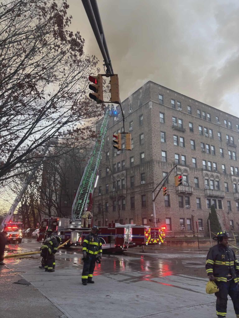 “We’ve been here since 2:30 this morning,” Mount Vernon Fire Commissioner Kevin Holt said in a video statement posted from the scene. “We have all hands on deck, multiple agencies from around Westchester County are assisting us. This fire started as a kitchen fire, and it got into the cockloft of the building and spread throughout the whole building.”