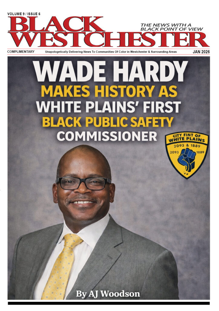 to our first issue of 2026. We couldn’t think of a better way to kick off the year than by celebrating the historic appointment of Wade Hardy as the City of White Plains First African American Commissioner of Public Safety. For decades, Mount Vernon was the only municipality in Westchester County with a Black Police Commissioner. In 2026, you have four and a Black County Executive. In June 2022, Terrance Raynor became the first Black Commissioner of the Westchester County Department of Public Safety, appointed by County Executive George Latimer (initially acting, then confirmed) after a distinguished career, including serving as Police Commissioner for Mount Vernon, fulfilling a goal of serving his community from within. Two months later, in August 2022, the Greenburgh Town Board unanimously voted to appoint GPD Captain Kobie Powell to assume the critical position of Chief of Police of the Greenburgh Police Department. Then, on June 30, 2025, Neil K. Reynolds was sworn in as the City of New Rochelle’s first Black Commissioner. And on Tuesday, January 6, 2026, White Plains Mayor Justin C. Brasch officially swore in Wade Hardy as the City’s new Public Safety Commissioner at City Hall.