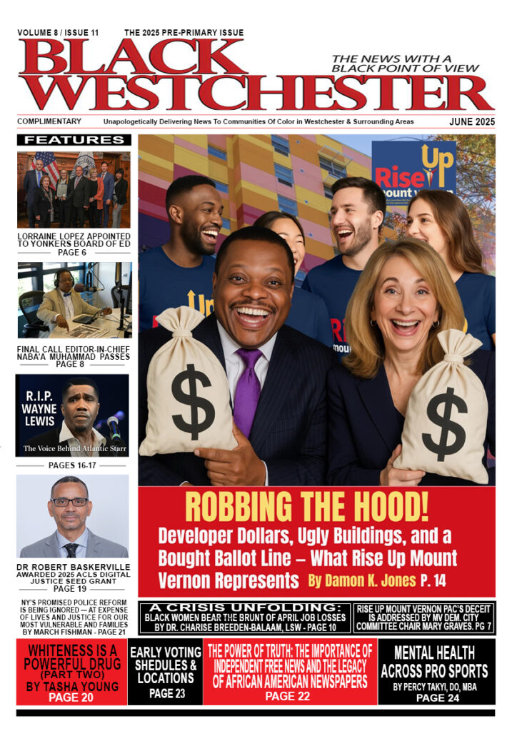We also celebrate the life and legacy of Greenburgh’s own Wayne Lewis, the co-founder and lead vocalist of the legendary Atlanta Starr. BW Publisher Damon. K. Jones shares his investigative report of developer Rella Fogliano and her contributions to The Rise Up Mount Vernon PAC, and how it affects the city of Mount Vernon. As always, the pages are filled with The News With The Black Point Of View we have been delivering since 2014! Please feel free to leave your feedback in the comment section below.