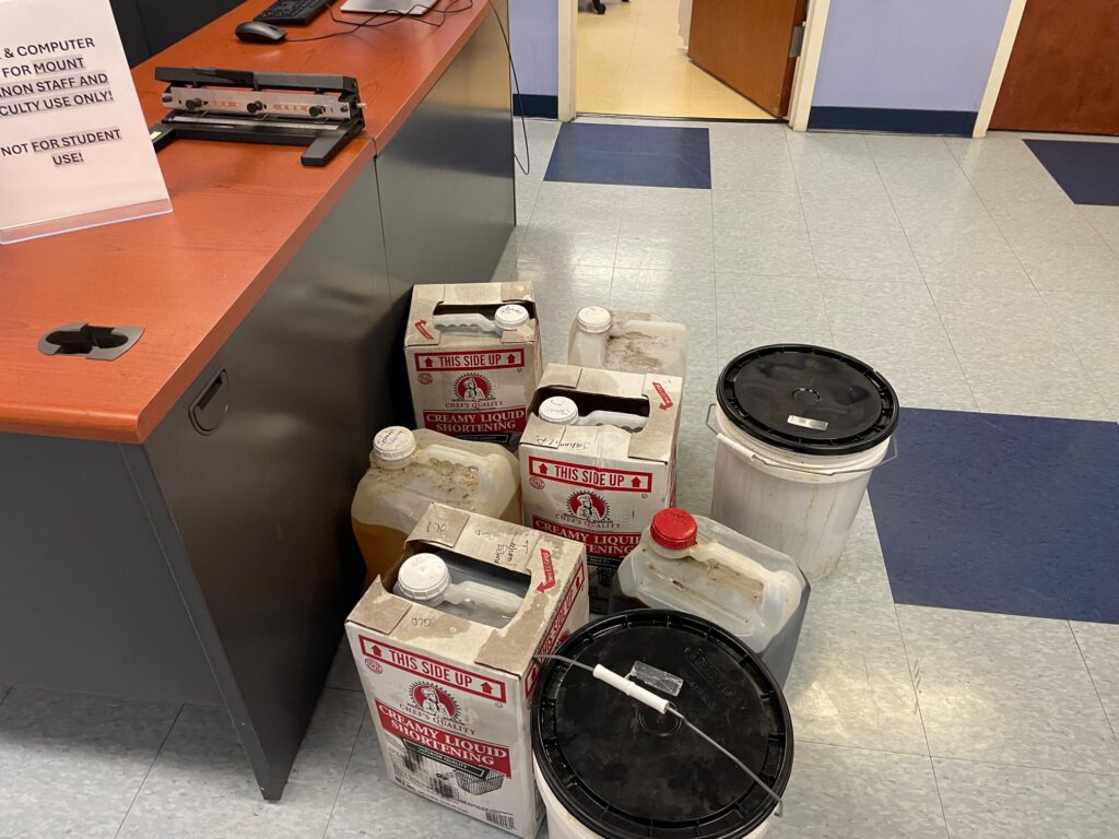Through local outreach and two collection sites in Mount Vernon, the students helped divert 200 gallons—nearly 1,400 pounds—of used cooking oil from businesses and residents, promoting cleaner water systems and environmental sustainability.