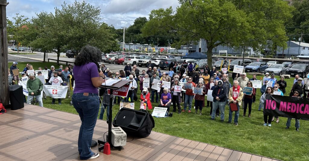 OSSINING, NY—Over a hundred local labor and community leaders rallied at Louis Engel Waterfront Park on Saturday in protest of the roughly $700 billion in cuts to Medicaid under the GOP’s budget plan.
