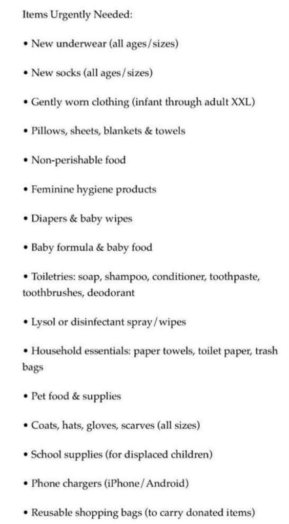 ****UPDATE**** Black Westchester received calls that the following items are also urgently needed: