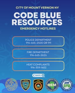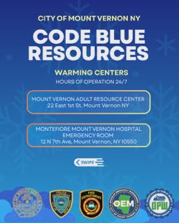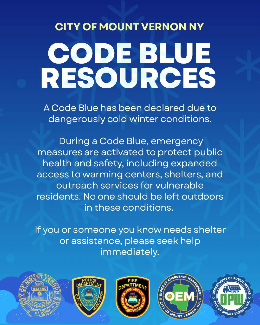 The City of Mount Vernon has activated Code Blue due to dangerously cold weather conditions. Warming centers and emergency services are available. Please share this information to help keep everyone safe. ❄️💙