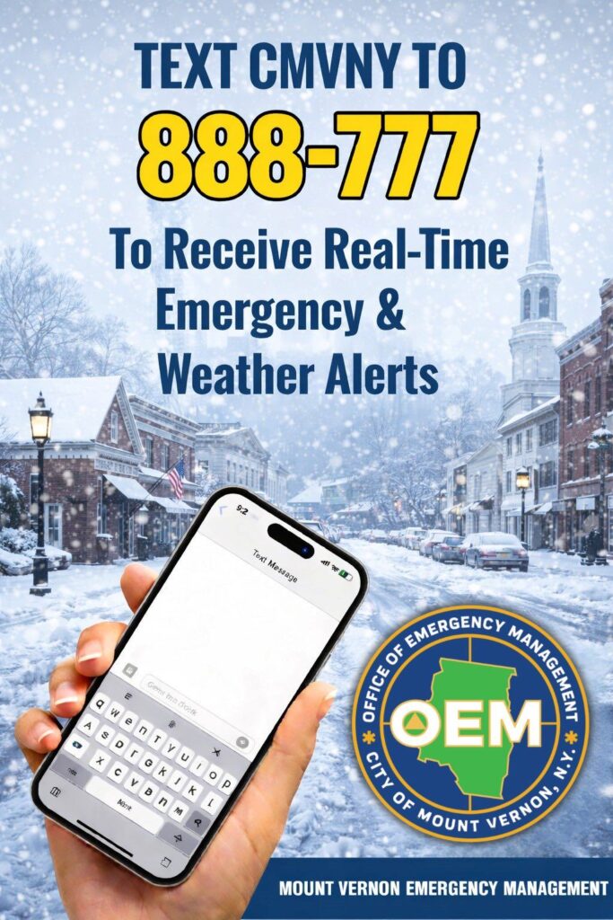 Text CMVNY to 888-777 to receive real-time emergency notifications, weather alerts, and public safety updates.