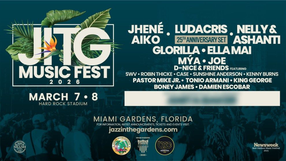 The 19th annual Jazz in the Gardens (JITG) Music Festival returned to Hard Rock Stadium in Miami Gardens, FL, on March 7–8, 2026, with performances from Jhené Aiko, Ludacris, Nelly, Ashanti, Joe, D-Nice & Friends, and More.