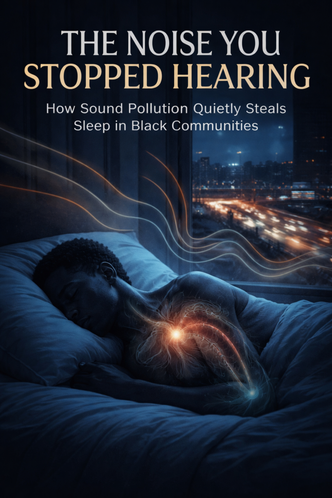 There has long been external control over Black communities’ relationship with rest. Forced labor schedules that denied sleep as a basic right. Overcrowded housing that made restoration structurally difficult. Environmental noise reflects the downstream consequences of those structural decisions. The highway routed through a neighborhood in 1958 is still generating sound pressure waves at 2 a.m. tonight. The zoning decision from two generations ago is still fragmenting sleep. The mechanisms are less visible than the ones history books tend to focus on, but the effect on the body is measurable and the consequences are real.