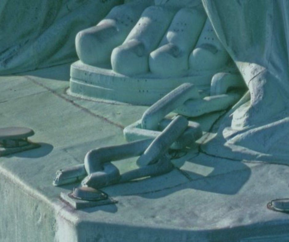 The reason most people do not know of the original intention of the the statute symbolizing the end of slavery is because not only is that not taught but the shackles and chains at her feet are not easily visible to visitors on Liberty Island because the Statue stands on a 154 foot tall pedestal, which effectively obscure the broken chains at her feet. But as Dr. Joy DeGruy eloguently stated, these are “the lies we were told and [here is] the truth that sets us free.”